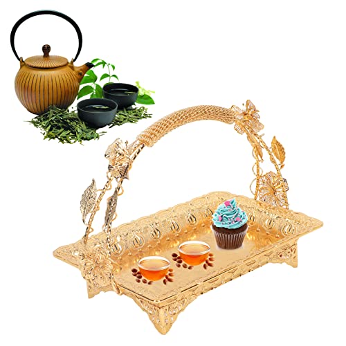 Kaffebricka, Serveringsbricka i Vintagestil Gyllene Bricka Zinklegering Metall Serveringsbricka för Hem, Bar, café