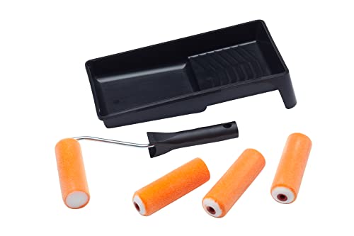 ProDec Contractor 7 stycken 4-tums minifärgroller av skum, ram och bricka för målning med glans- och satinfärger på golvlister, fönsterbrädor, paneldörrar, skåp, metall och mer, 4"