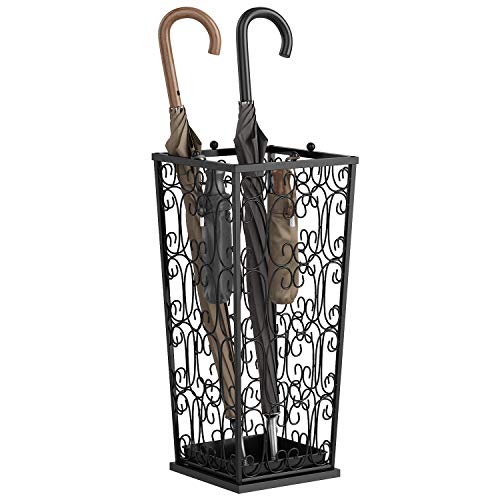 AcornFort U-02 stor storlek svart metall klassisk promenadstav hållare paraplyställ hem kontor hall förvaring med 4 övre knoppkrokar och en botten regnvatten läckage bricka 56 x 25 x 25 cm