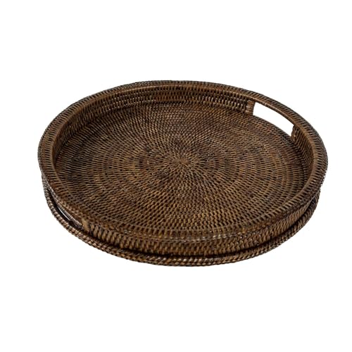 DECRAFTS Rund rotting, serveringsbricka med handtag, vävd dekorativ bricka för soffbord, ottomansk, naturlig (34 cm x 7 cm)
