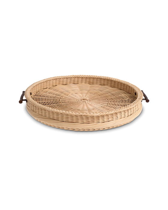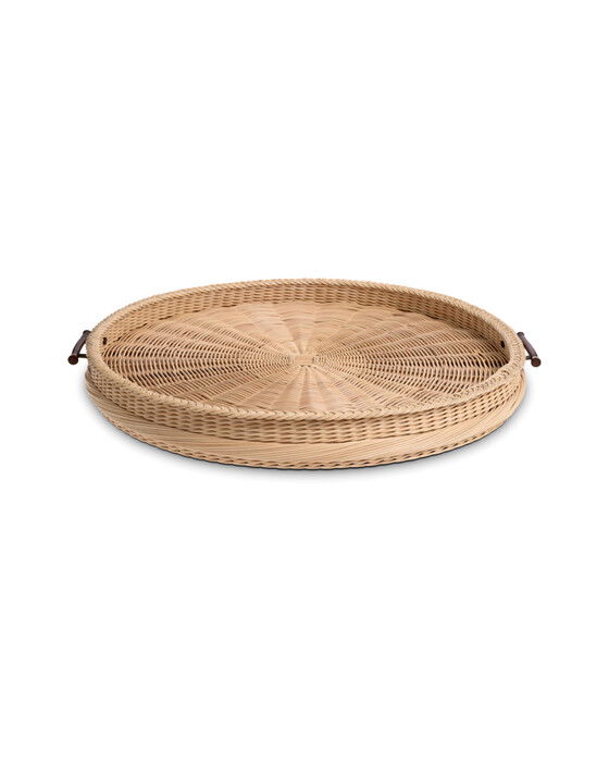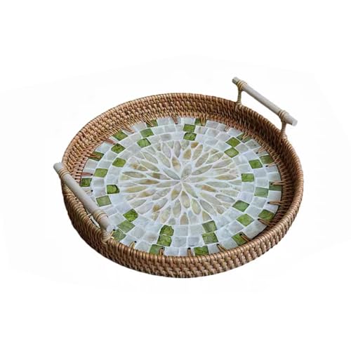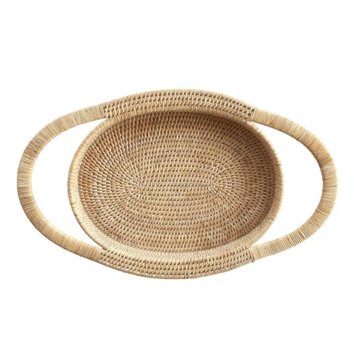 SLHEQING Rund rotting serveringsbricka med handtag, dekorativ soffbord, bricka, flätbricka för frukt, dryck, bröd, te, ljus