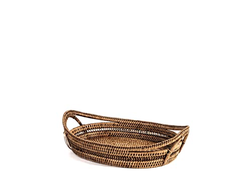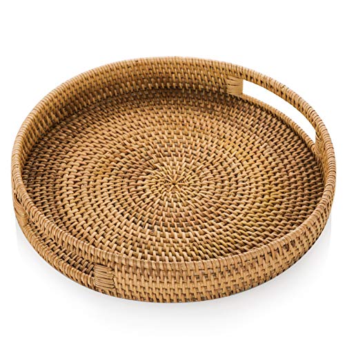 Sziqiqi Rotting serveringsbricka med handtag 35 cm handvävd däckbricka rottingbricka rustik dekorativ bricka för frukost, drycker, snacks, bröd för soffbordet bar middagsbjudningar