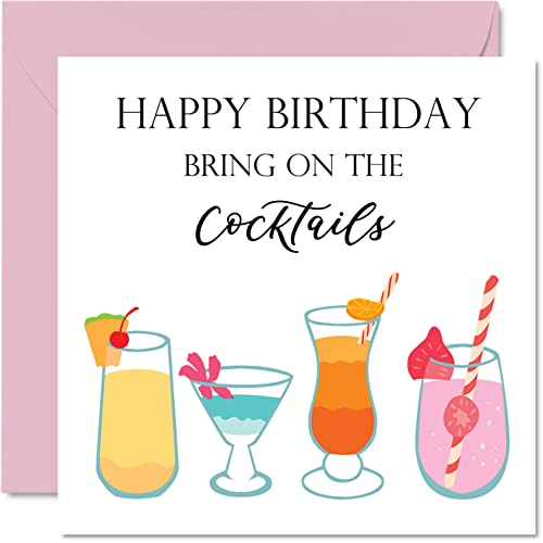 Stuff4 Cocktailfödelsedagskort för män och kvinnor – Bring on the cocktails – Happy Birthday-kort för mor, syster, dotter, moster, mormor, vän, arbetskamrat, 145 mm x 145 mm