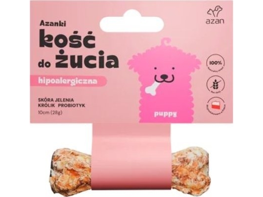 Azan Azan - Tuggben I Rådjursskinn Med Kanin Och Probiotika För Valp 10Cm