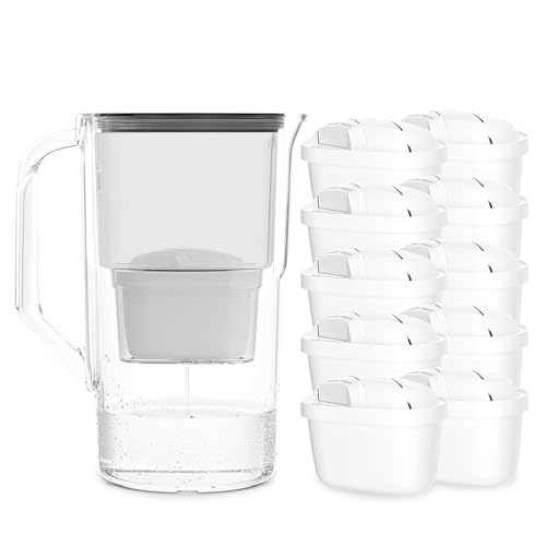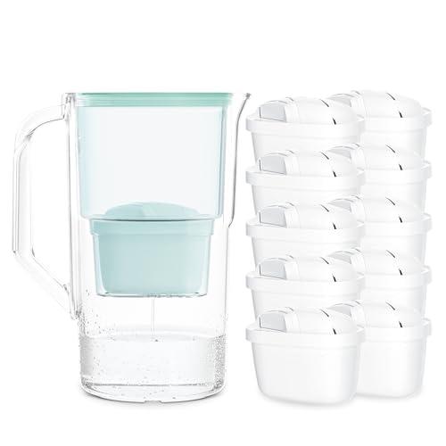 Wessper Aqua Max Basic vattenfilterhällare 2,5 l kompatibel med Brita Maxtra, vattenfiltreringssystem för att minska kalk, klor, med 10 vattenfilterpatroner, mynta
