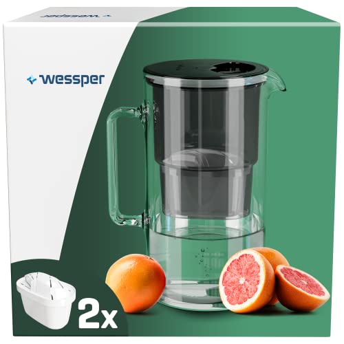 Wessper Glasfilterkaraff med två filterkaraff, kompatibel med Brita Maxtra, Brita Maxtra+, stor kapacitet 2,5 l, karaffsats + 2 patroner - svart