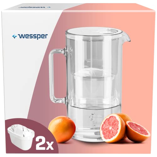 Wessper Glasfilterkaraff med två filterkaraff, kompatibel med Brita Maxtra, Brita Maxtra+, stor kapacitet 2,5 l, karaffsats + 2 patroner - vit