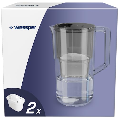 Wessper Aqua Max Basic vattenfilterhällare 2,5 l kompatibel med Brita Maxtra, vattenfiltreringssystem för att minska kalk, klor, med 2 vattenfilterpatroner, svart