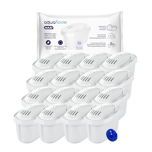 Aquafloow Vattenfilterpatroner 16 Stycken för Vattenkannor | Filterpatroner Kompatibla med Brita Maxtra+, Style, Marella, Elemaris, XL, Fun Filterkannor | Reducering av Kalkavlagringar och Klor