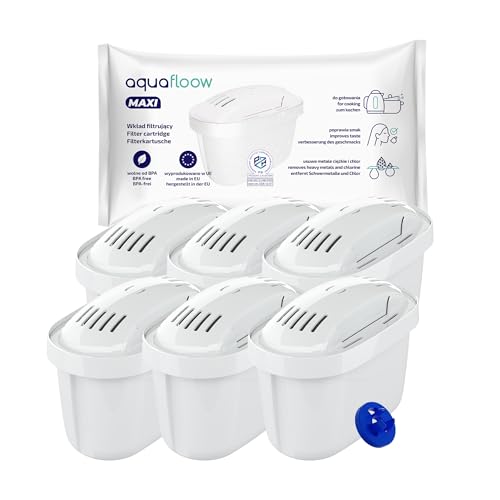 Aquafloow Maxi Set Med 6x Vattenfilterpatroner | Passar Alla BRITA- och DAFI-kannor Med UNIMAX-filter | Water Filter Cartridges Kompatibel med Brita Maxtra+, Style, Marella, Elemaris, Xl, Fun