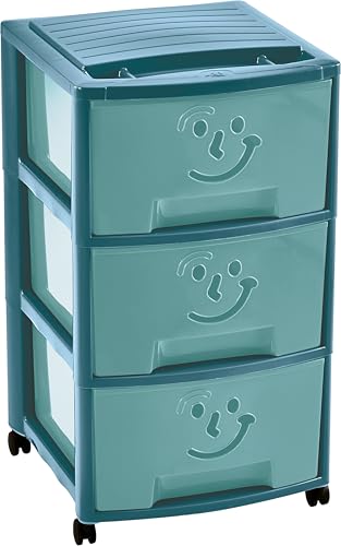 M-Home | Barnens nyckfulla förvaringstorn / 3 lådor + hjul | plast | grön | 37 x 39 x 67 cm | FANCY SMILE 3 | PLS6093-179