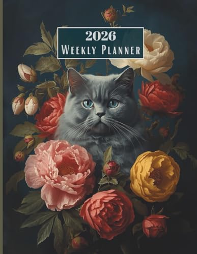 2026 Weekly & Monthly Planner with Elegant British Blue Cat | Vintage Floral Baroque Style Calendar | Perfect Gift for Cat Lovers & Flower Fans | 8.5x11, 110 Pages