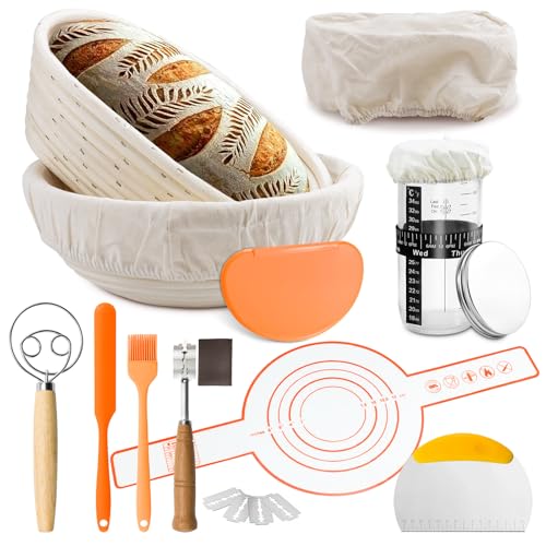 WILLONG jäskorgar jäskorgsset, komplett bröd bakning tillbehör, 25 cm runda och 23 cm oval brödkorg, jäskorgar för brödbakning