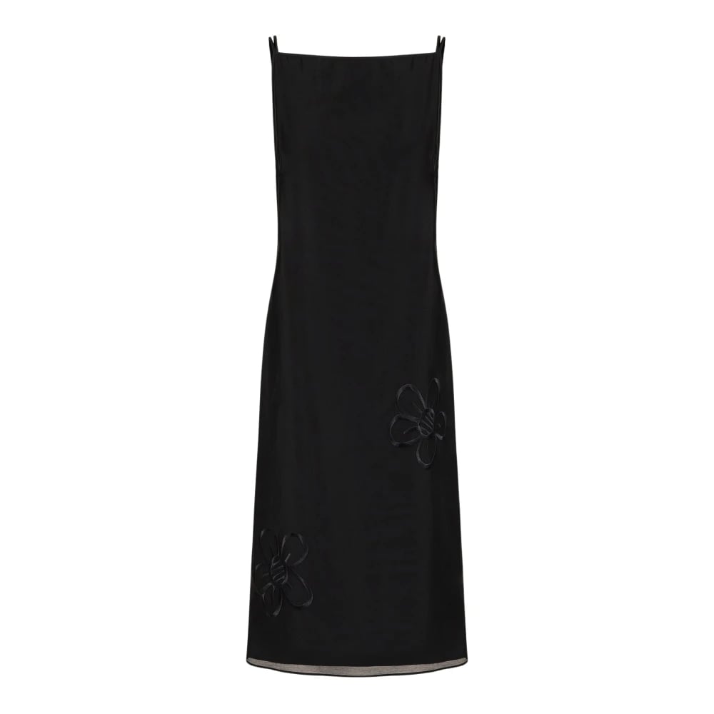 Elisabetta Franchi, Klänningar , Dam, M, Polyester, Svart Aftonklänning med Broderade Blommor