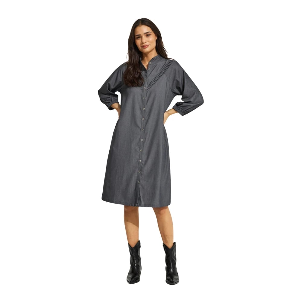 IN Front, Klänningar , Dam, 2Xl, Grå Bella Klänning med Broderade Detaljer