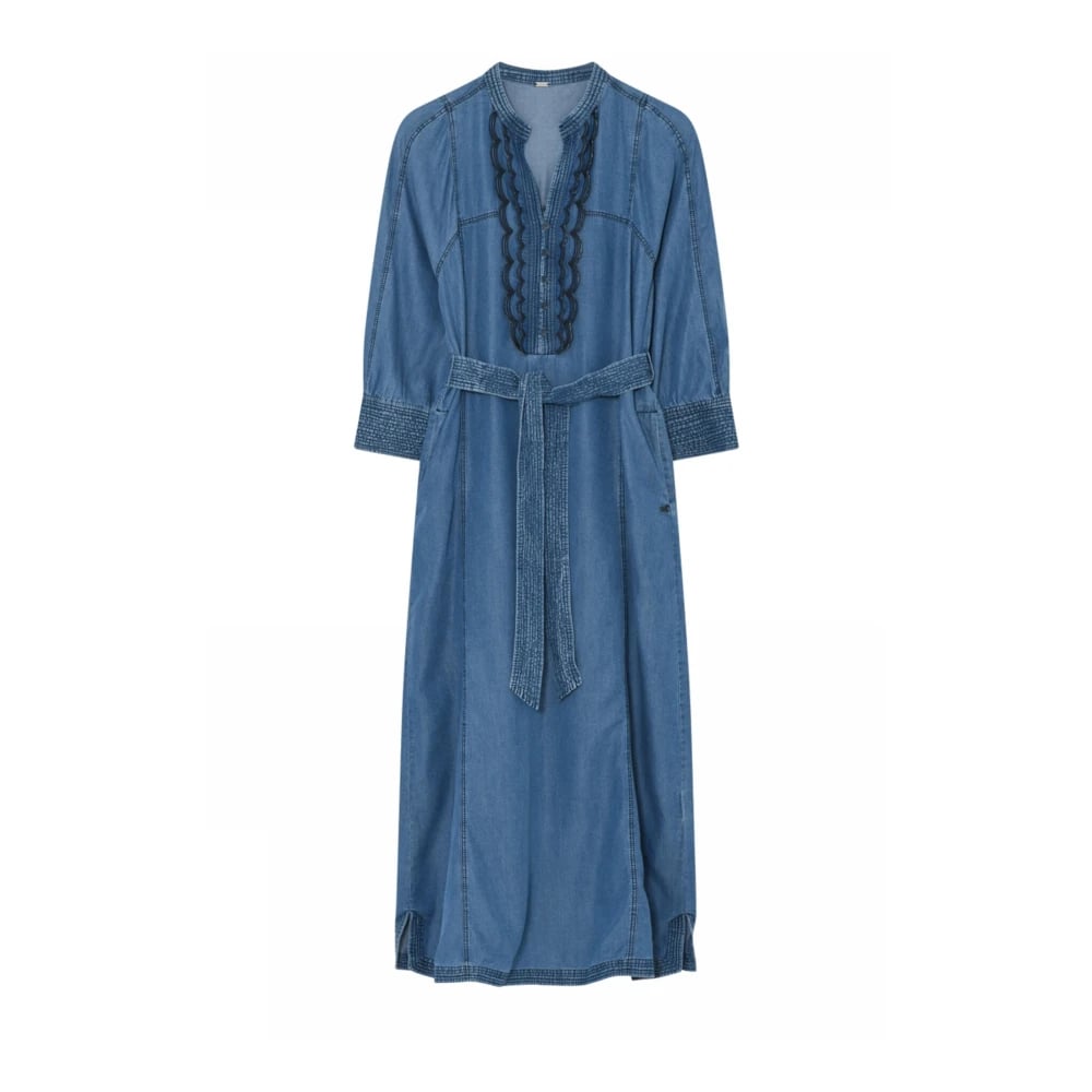 Gustav, Klänningar , Dam, L, Denim, Denim Lång Klänning med Broderade Detaljer