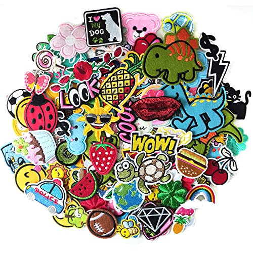80 st slumpmässiga blandade stilar broderade lappar, ljusa livliga färger, sy på/stryk på lapp applikation för kläder, klänning, hatt, jeans, gör-det-själv-tillbehör ..