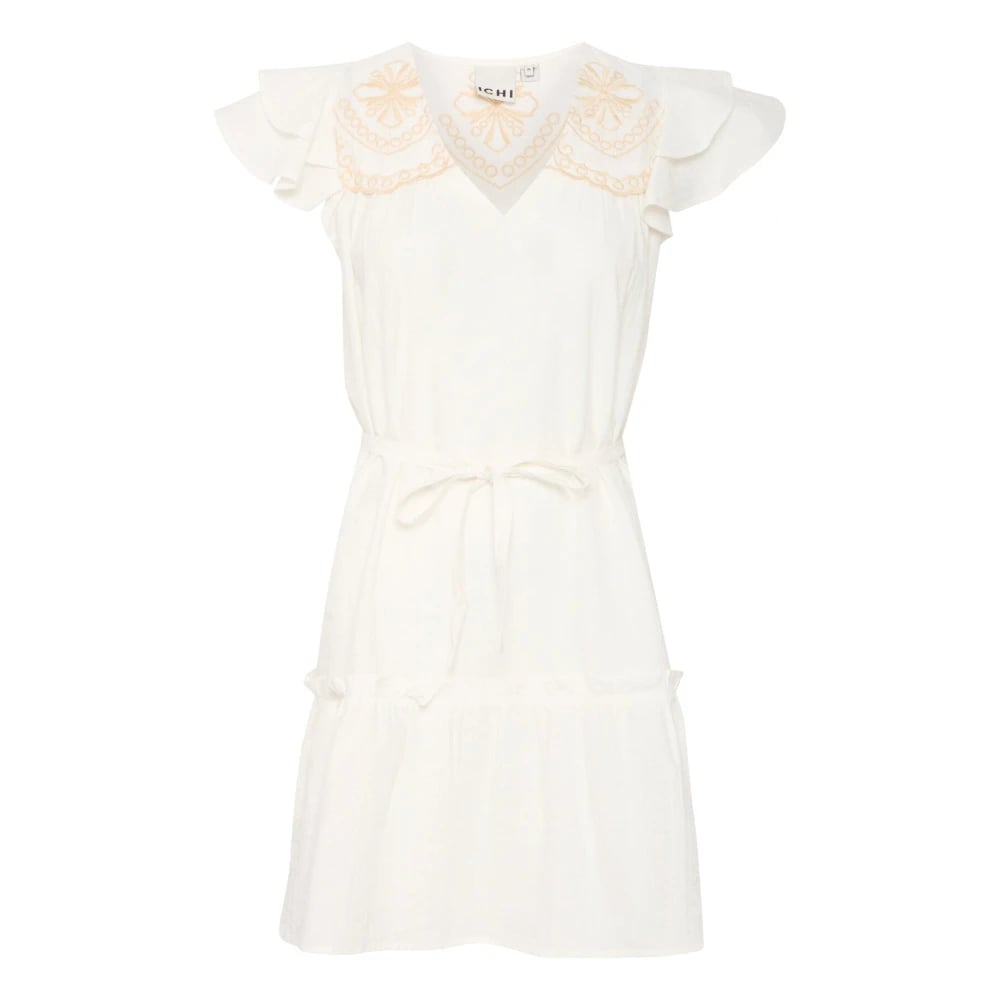 Ichi, Klänningar , Dam, XL, Bomull, Cloud Dancer Klänning med Broderade Detaljer