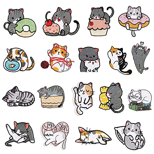 RHQFDM 18 st djur stryk på lappar katt broderade strykplåster tyg reparation lapp självhäftande lappar sy på lappar gör-det-själv motiv applikation för kläder klänning jacka