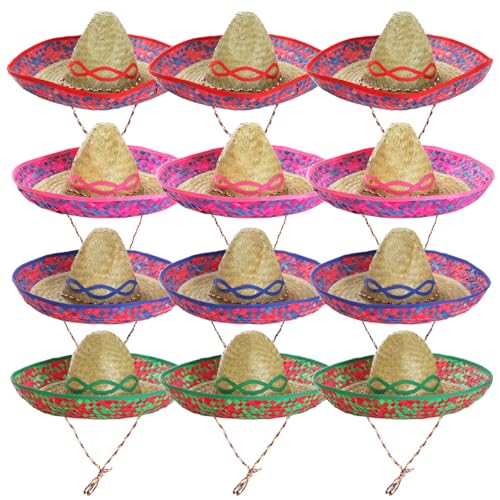 I LOVE FANCY KLÄNNING 12-pack mexikanska sombrero-hattar - 3 blå, 3 gröna, 3 rosa, 3 röda broderade sombreros - perfekt för temafester