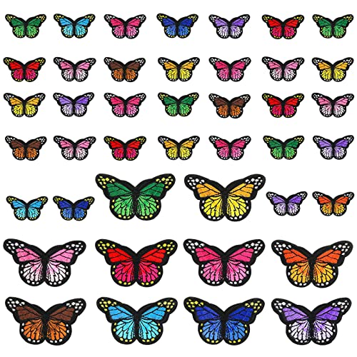 Lusofie 60 st fjärilsstrykjärn, 2 storlekar broderade sy applikationslappar för kläder, kläder, klänning, hatt, byxor, skogardin, jeans, väskor, gör-det-själv konst hantverk