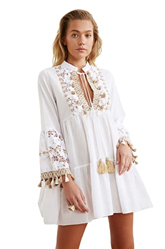 Trendyol Kvinnors broderade tofs detaljerad voile strandklänning klänning, vit, 38