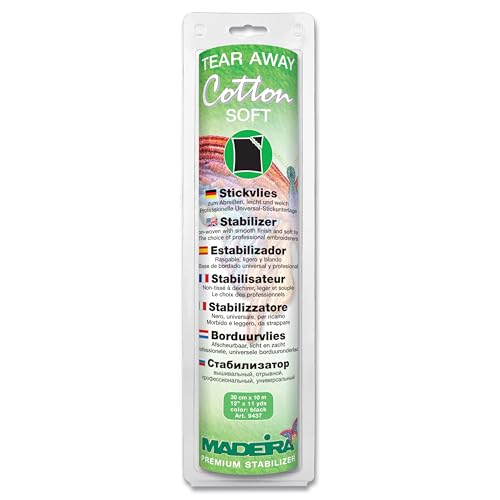 Madeira Stabilisateurs Tear Away - Dubbla bomullsremmar för broderi, applikationer, boutonnières, detaljerade instruktioner medföljer - 10m x 30cm - Svart