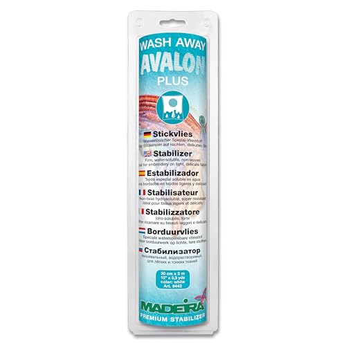 Madeira Stabilisateurs solvables lavables - Solid stöd för broderi, applikationer, transparent tyg, detaljerade instruktioner ingår - 3m x 30cm - Vit