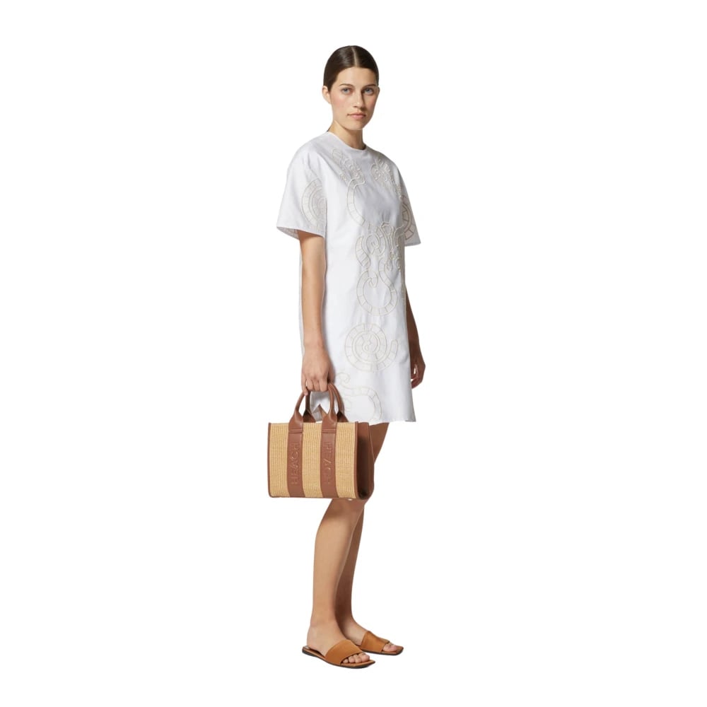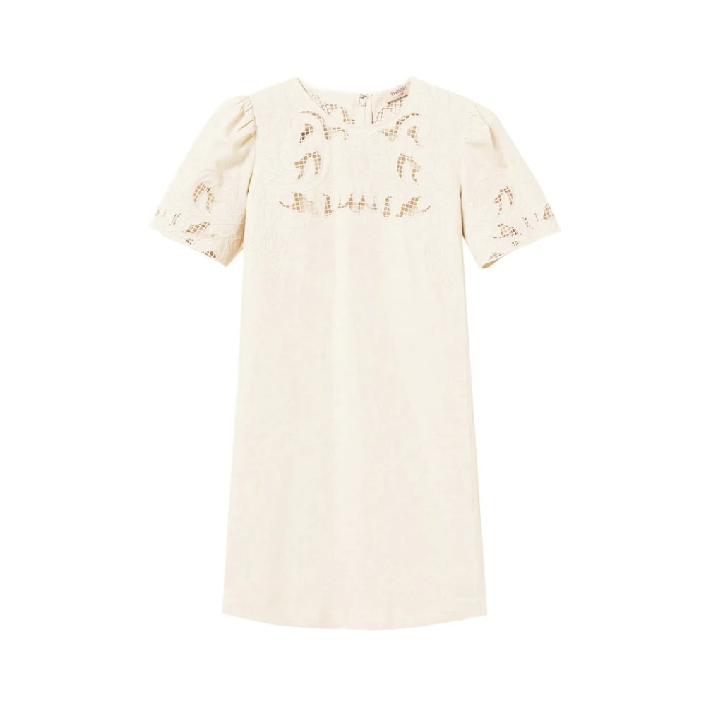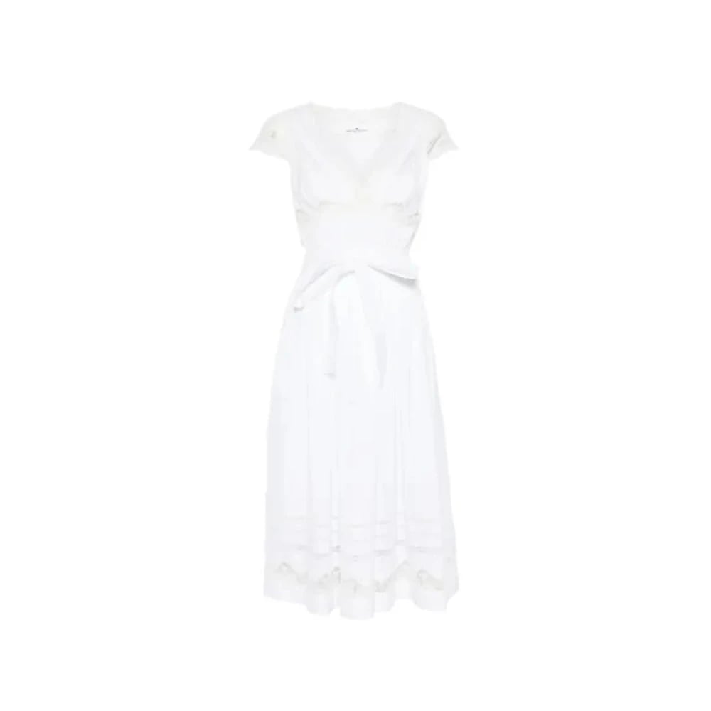 Semicouture, Klänningar , Dam, S, Bomull, Perforerat Broderi V-ringad Klänning