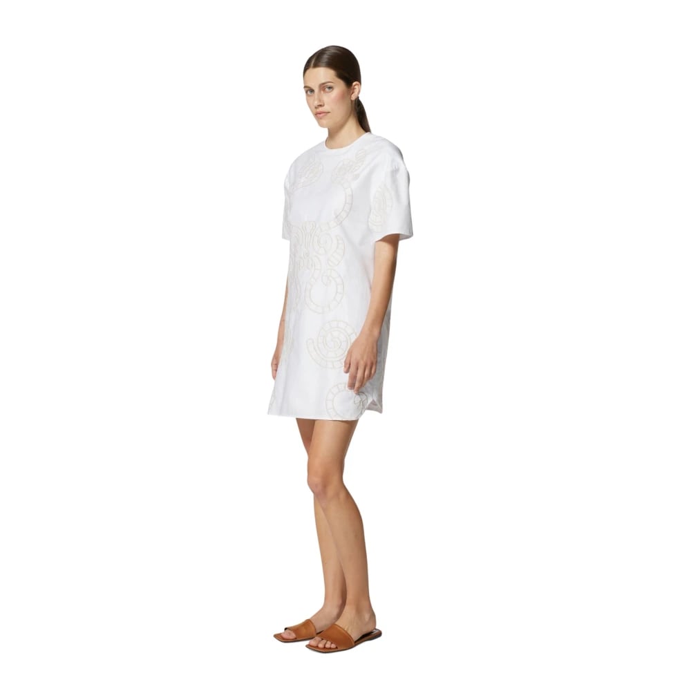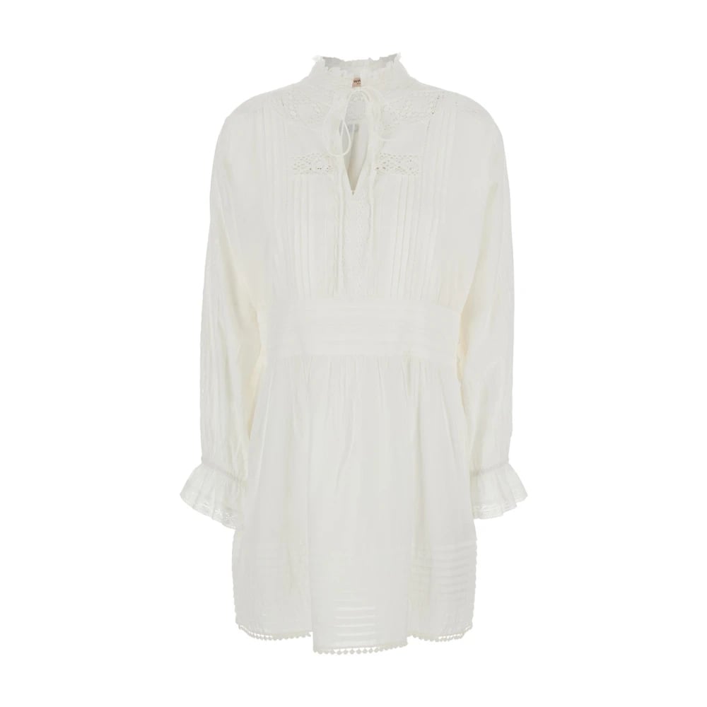 Silvian Heach, Klänningar , Dam, M, Bomull, Kort klänning med kontrasterande dekorativt broderi