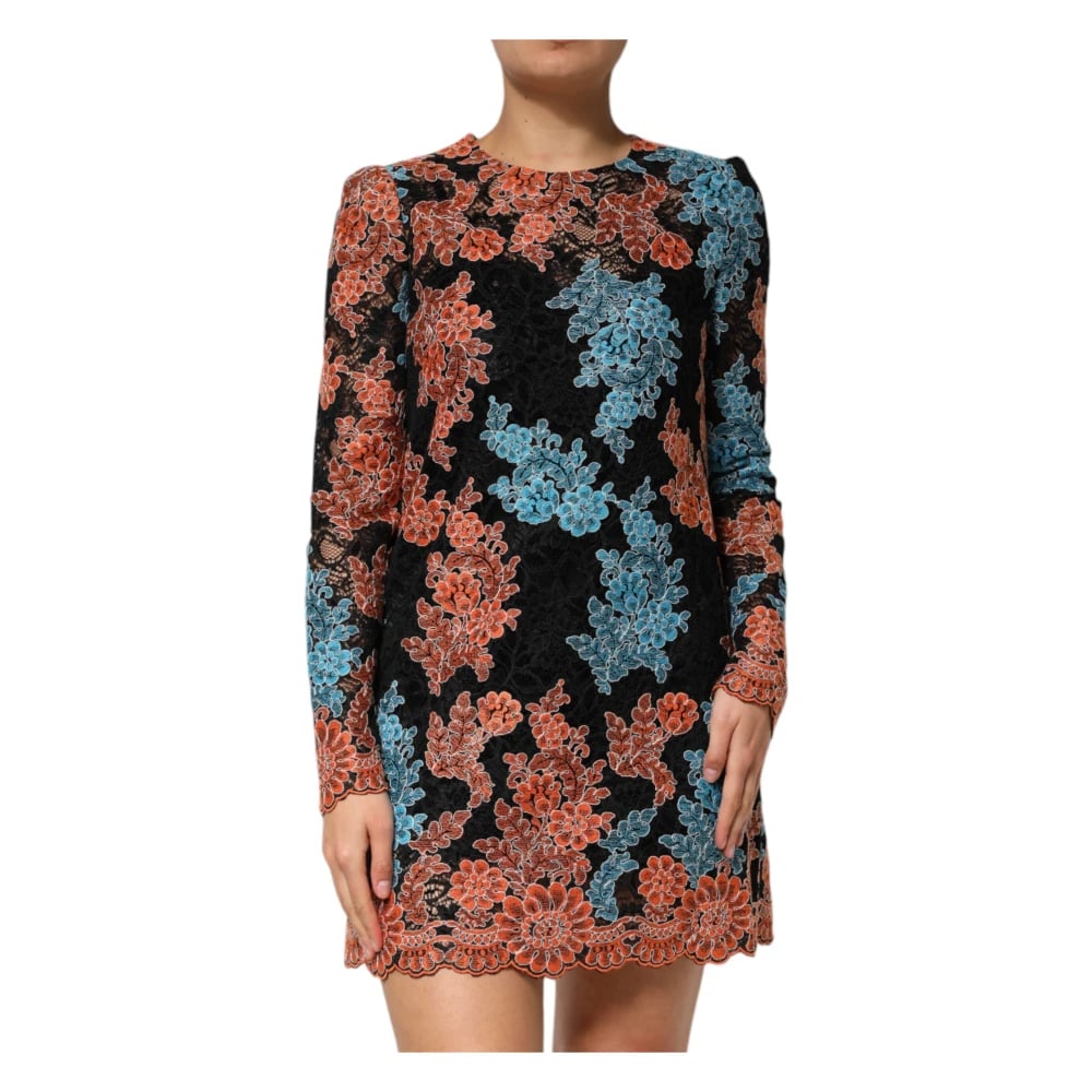 Dolce & Gabbana, Klänningar , Dam, M, Bomull, Blommig Broderi Shift Mini Klänning