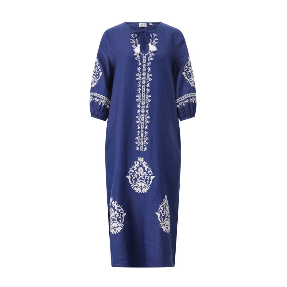 Emily Van den Bergh, Klänningar , Dam, S, Linne, Boho Linne Midi Klänning med Broderi