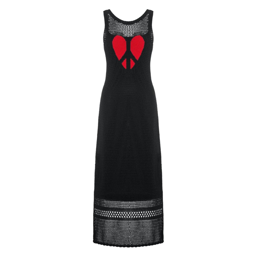 Moschino, Klänningar , Dam, M, Bomull, Stickad Klänning med Perforerat Peace & Love Broderi