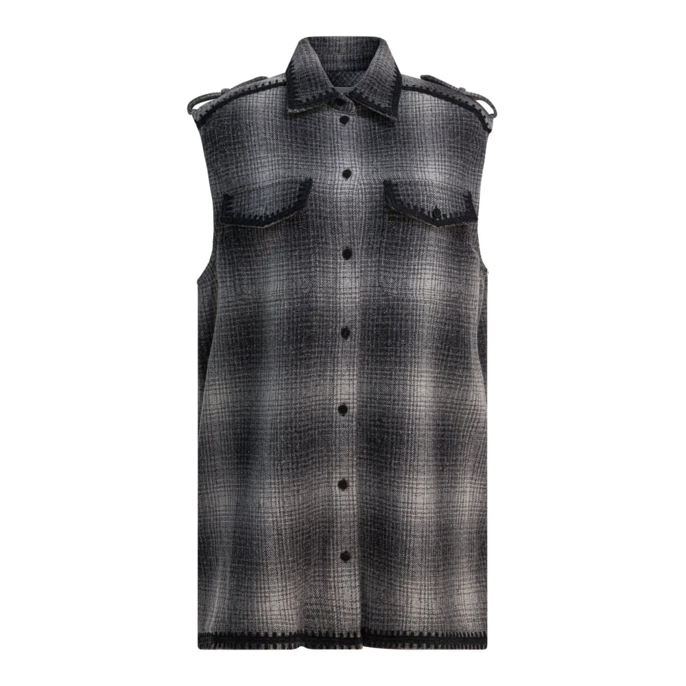 Balmain, Klänningar , Dam, 2Xs, Kort Ärmlös Klänning med Rutig Broderi