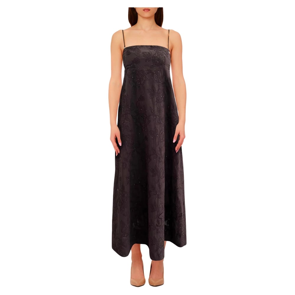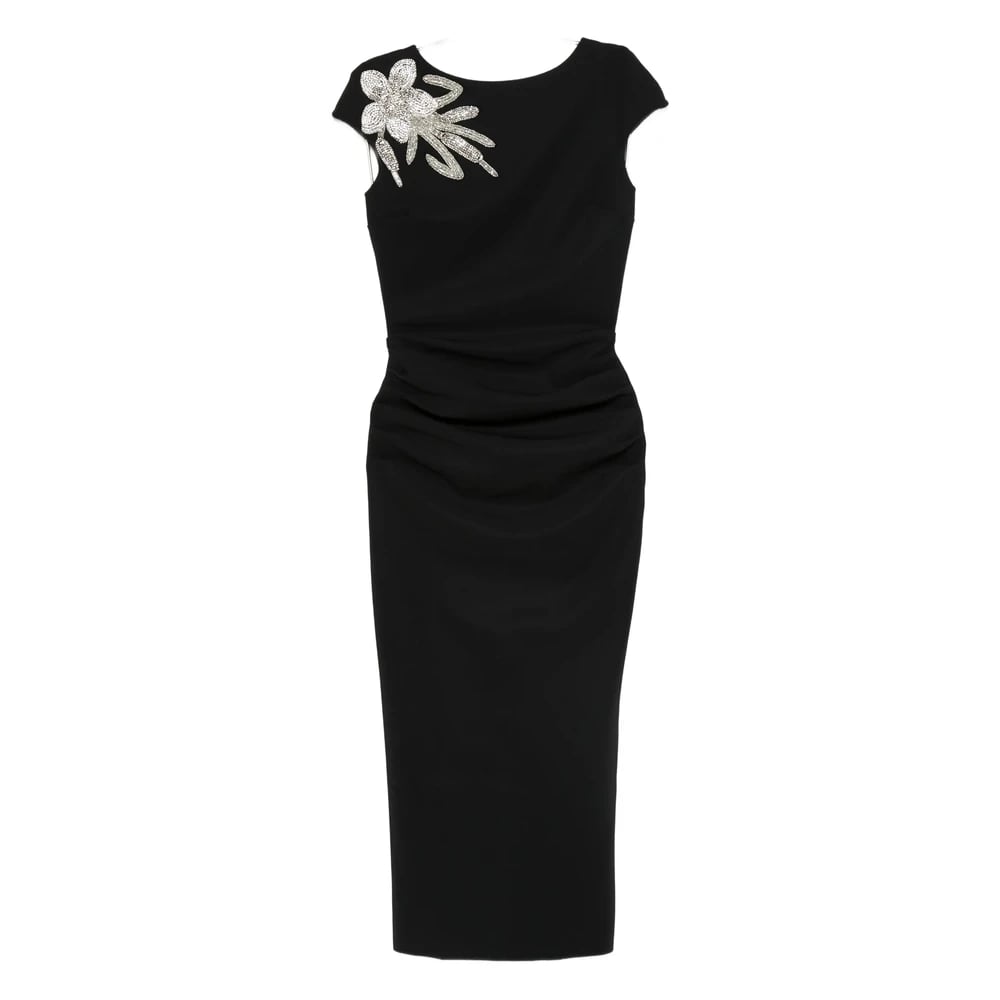 Chiara Boni, Klänningar , Dam, L, Svart Klänning med Cap Sleeves och Metallic Broderi