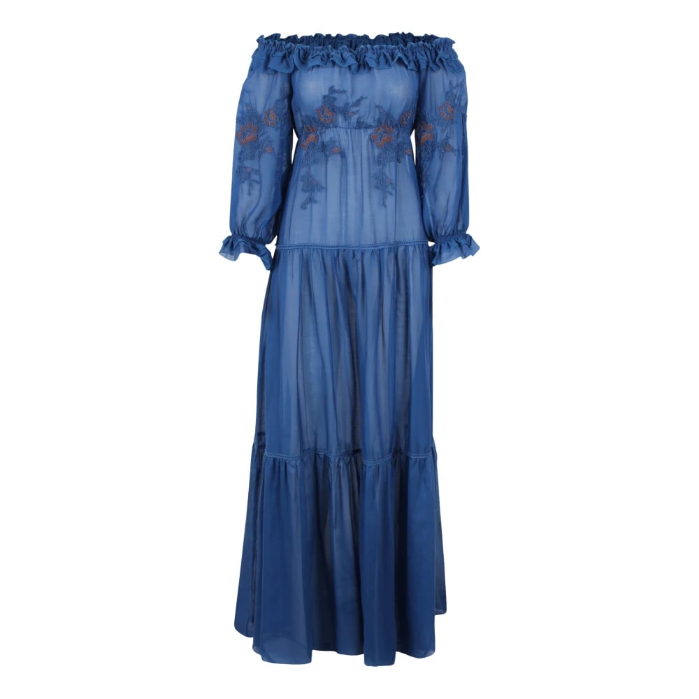 Liu Jo, Klänningar , Dam, S, Bomull, Lång Klänning med Broderi