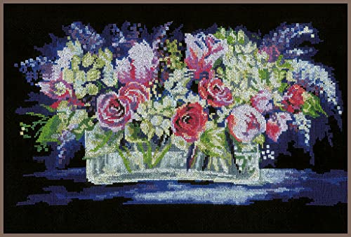 LANARTE Korsstygn räknade set komplett tavla set rosor och broderier fritid kreativ hemdekoration DIY present ca. 40 x 24 cm räknat korsstick broderi