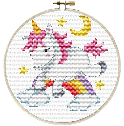 Ladybird Stickset Unicorn Frolic, långstygn set med broderiram 15,2 cm, komplett set för en rund broderibild, hantverk hobby för vuxna och barn från 8 år