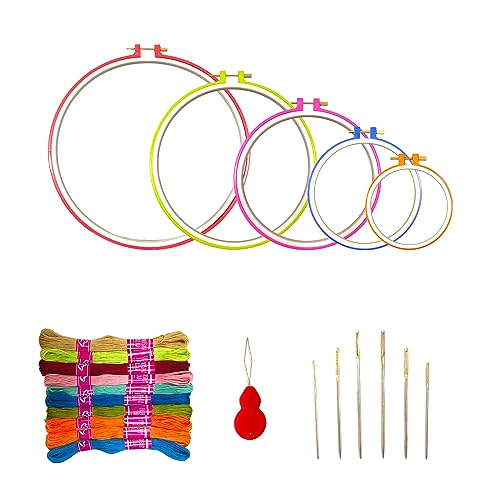 Broderiramar av plast, flerfärgad, (11, 15, 19, 22, 26 cm), korsstygnsramar, broderiram, broderiverktyg, hantverk, handsömnad, med tillbehör (Kit 9)