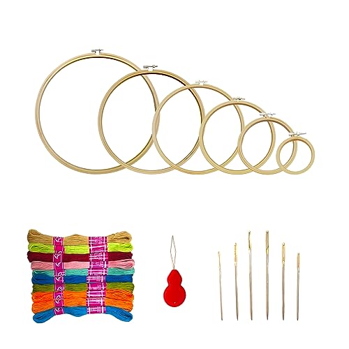 Broderiramar i trä (08, 12, 18, 22, 25, 30 cm), korsstygnsramar, broderiram, broderiverktyg, hantverk, handsömnad, med tillbehör (Kit 7)