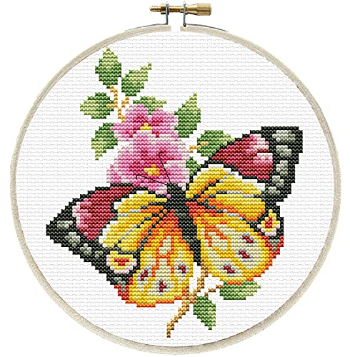 Ladybird Stickset Butterfly Bukett, långt stygn-set med broderiram 15,2 cm, komplett set för en rund broderibild, hantverk hobby för vuxna och barn från 8 år