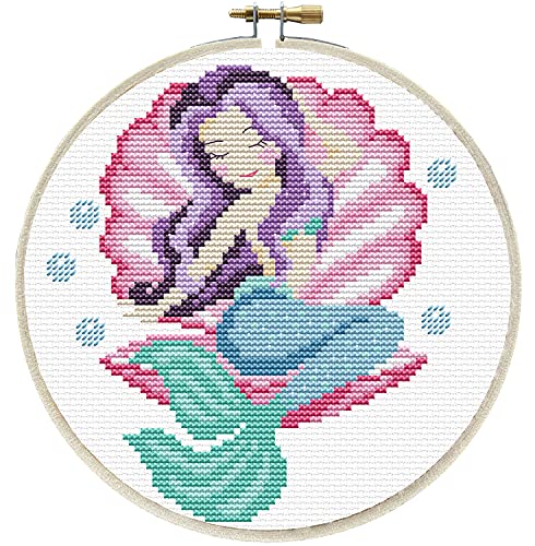 Ladybird stickset Mermaid Dreams, långt stygn-set med broderiram 15,2 cm, komplett set för en rund broderibild, hantverk hobby för vuxna och barn från 8 år