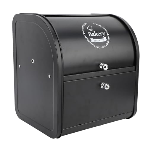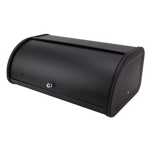 HollyHOME Brödlådor med kropp i rostfritt stål, metallförvaringslåda, köksbänk, stor brödlåda med rullbart lock, svart