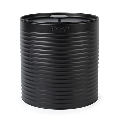 Russell Hobbs ribbad rund brödkorg – brödlåda i metall, stor köksbehållare, bänkskivförvaring/organisation, hållbart pulverlackerat stål, dragtopplock, lätt att rengöra, ribbad design, svart