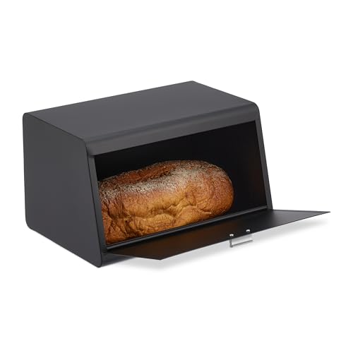 Relaxdays Brödlåda av rostfritt stål, brödförvaringslåda, HBT: 20,5 x 34,5 x 23,5 cm, brödförvaring, metall, svart