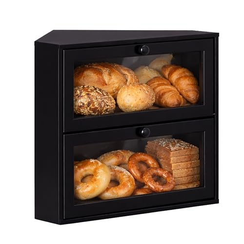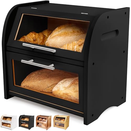 Apace Living stor brödlåda – brödkorg med dubbla lager för förvaring av köksbänkskivor | unik vintagedesign med tydliga fönster | brödförvaring med hög kapacitet (självmontering) (Bamboo svart)