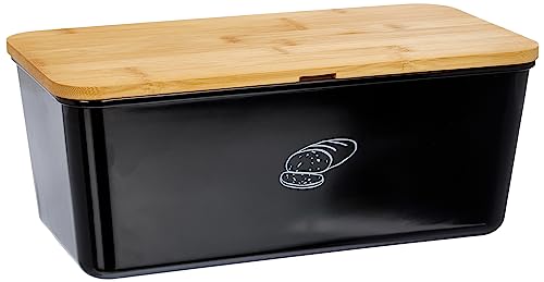 Zeller 25381 brödlåda med bambulock, metall, svart, ca 26,5 x 26,5 x 14,5 cm, brödlåda, brödförvaring, brödbehållare