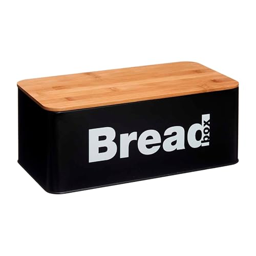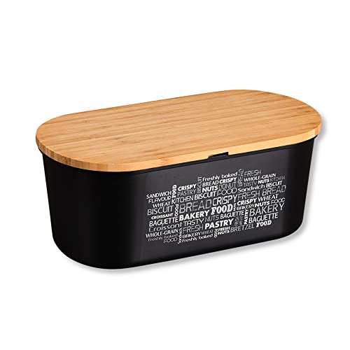 FLORINA Brödlåda BRUSTO 35,5 x 21,5 x 19,5 cm I Brödbox av Stål och Bambulock I Rymlig och Modern Brödbehållare I Längre Färsk Brödförvaring I Brödlåda för Kök I Färg: Svart