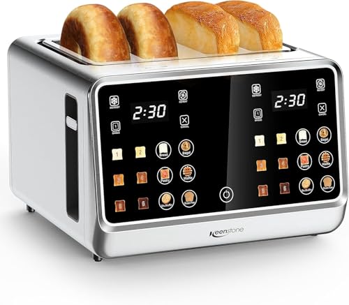 Keenstone Intelligent brödrost med 4 fack - 75° lutande pekskärm, dubbel oberoende kontroll, unik trådfunktion, uppvärmning och avfrostning, 6 inställningar för automatisk förgyllning