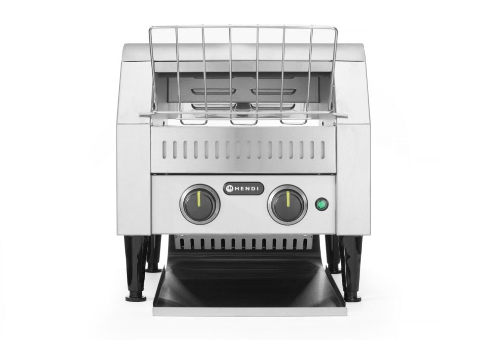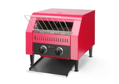 HENDI Genomgående brödrost, dubbel, transportbandbrödrost, kedjebrödrost, justerbar rosttid upp till 3 minuter, guide rostfritt stål, 230 V, 2240 W, 418 x 368 x (H)387 mm, rostfritt stål, röd